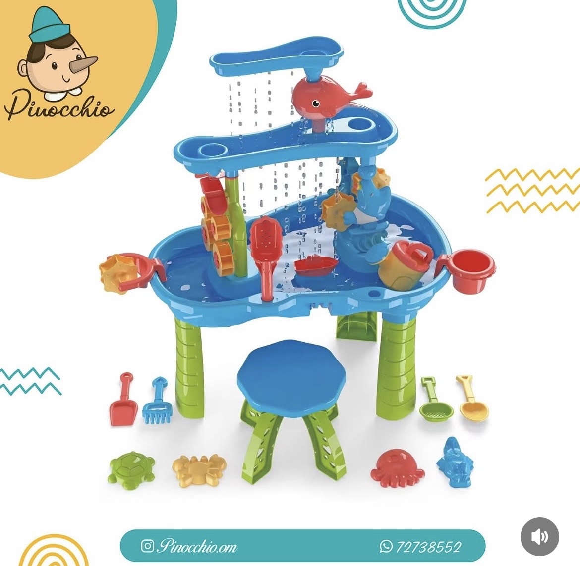 الطاوله شامله للادوات الموضحه بالصوره (الكرسي /الاداوات/اللعب..)