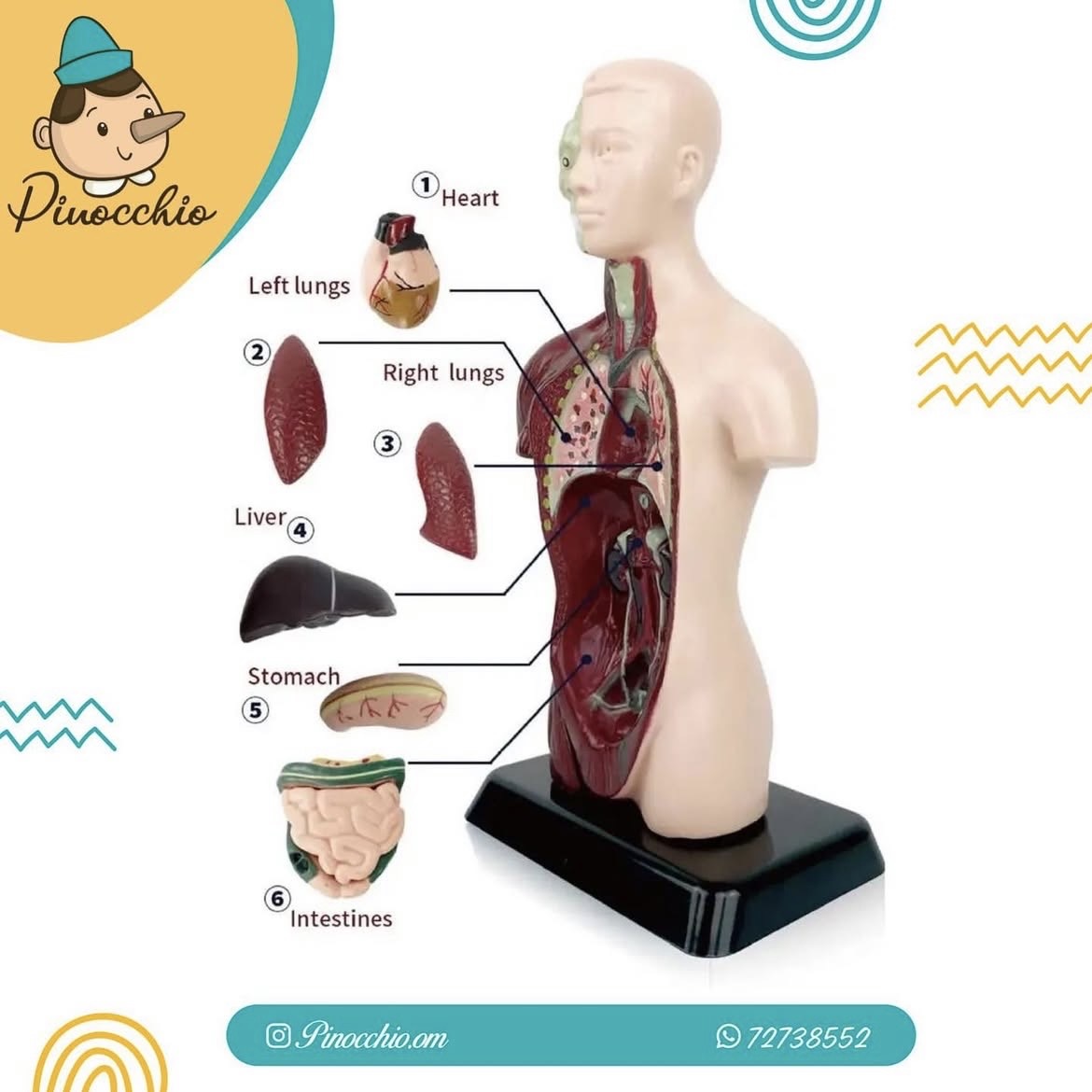 تموذج جذع الجسم البشري يحتوي على ٦قطع يمكن فصلها واعادة تركيبها بسهوله
