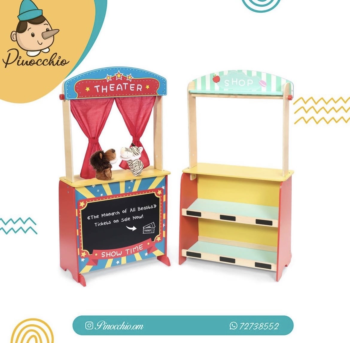 يمكن استخدامه من الجهتين دكانه او مسرح للدمى